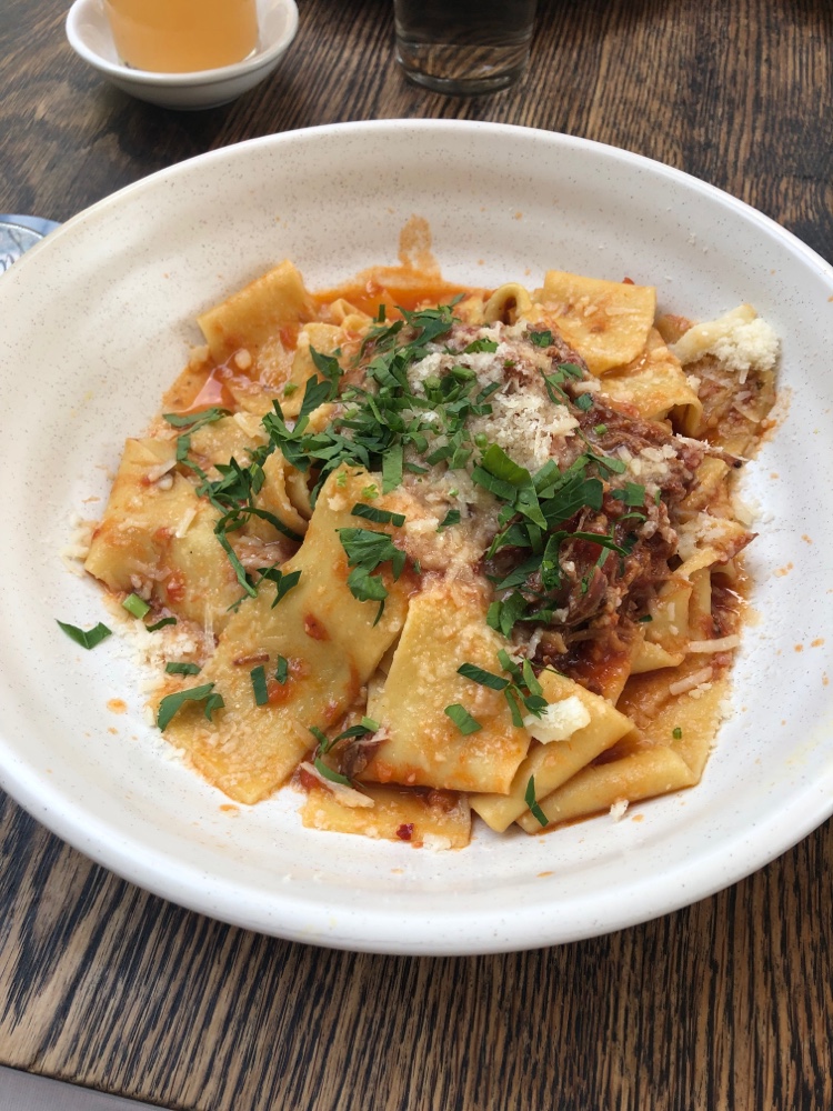 - Pappardelle All’ragu lovingly prepared with wild boar, Parmigiano Reggiano, and parsley - a hearty favorite priced at $32.